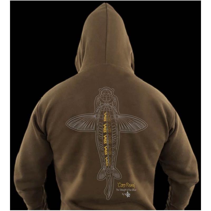• Cappuccio a doppio strato • Tasche per le mani • Interno in tessuto polare spazzolato per maggiore calore e comfort • Tessuto ricco di cotone per maggior comfort (78 % cotone morbido / 22 % poliestere) • Stampa gialla sulla spalla « Vass » • Stampa « Vass Carp Rising » sul davanti e sul retro