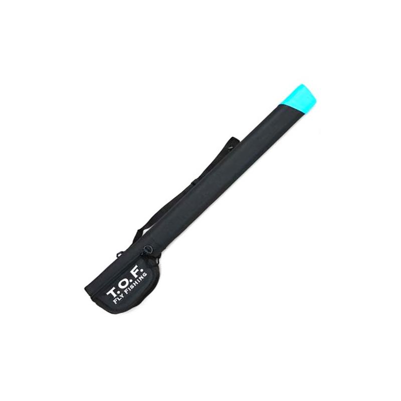 Tubo di trasporto per canna con il mulinello attaccato. Di sezione triangolare, non rotolerà. Possiede 4 scomparti per proteggere ogni sezione. La parte per il mulinello è foderata di finta pelliccia di pecora per una migliore protezione del mulinello. Realizzato in Cordura nero e blu turchese.