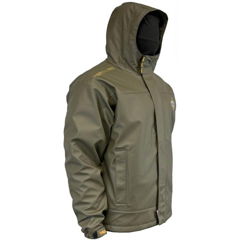 Giacca imbottita invernale – Edizione Kaki : • Cappuccio da tempesta con cordino elastico e fermacorda, più una linguetta di regolazione posteriore per sistemare la visiera. • Polsini elasticizzati con patta di chiusura. • Due tasche esterne per le mani con zip YKK invertita, pratiche per riposare le mani tra un lancio e l'altro. • Tasca pettorale interna lato sinistro con zip YKK, ideale per il telefono o piccoli accessori. • Cerniera frontale YKK con doppia patta anti-tempesta. • Cordoncino di regolazione sul fondo con fermacorda su entrambi i lati. • Tessuto facile da riparare. • Schiena prolungata per una migliore protezione e un migliore deflusso dell'acqua.