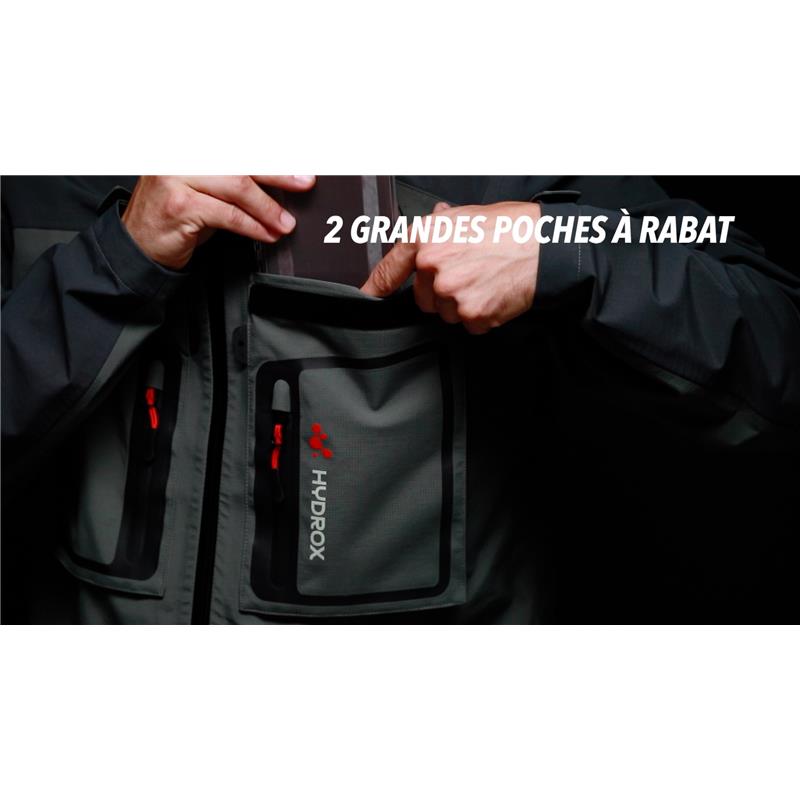 • Giacca da wading impermeabile e traspirante a 3 strati • 2 grandi tasche con pattina • 2 tasche zippate • Sospensori per accessori • Anello dorsale • Membrana X3-BreathTec 10000mm/5000mvp • Rivestimento 100% poliestere/Ripstop