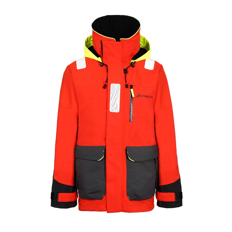 • le cuciture sigillate garantiscono un'ottima impermeabilità del capo. • il collo alto foderato in pile, associato al cappuccio attaccato, offre una protezione ottimale contro le intemperie. • i polsini sono dotati di manicotti in poliuretano per una protezione rinforzata. • il capo è dotato di 6 tasche di cui 2 scaldamani (2 tasche applicate e 4 tasche con zip). • per una maggiore visibilità il capo è dotato di bande retro-riflettenti. • sono applicati rinforzi ai gomiti e nella parte bassa della schiena per una resistenza massima all'abrasione. • il logo bermudes è applicato sul petto.