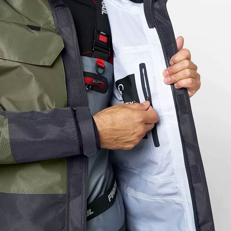 design elegante e versatile pensata con uno spirito moderno, questa giacca sfoggia cerniere e loghi a contrasto, aggiungendo un tocco di eleganza al tuo guardaroba outdoor. il fondo della giacca è regolabile, permettendoti di adattarla a tuo piacimento. tutte le cuciture e le cerniere sono completamente sigillate , garantendo una protezione ottimale contro l'acqua. dettagli in gomma aggiuntivi offrono punti di attacco pratici per il tuo materiale da pesca, e elementi riflettenti migliorano la tua visibilità e la tua sicurezza durante le uscite notturne.