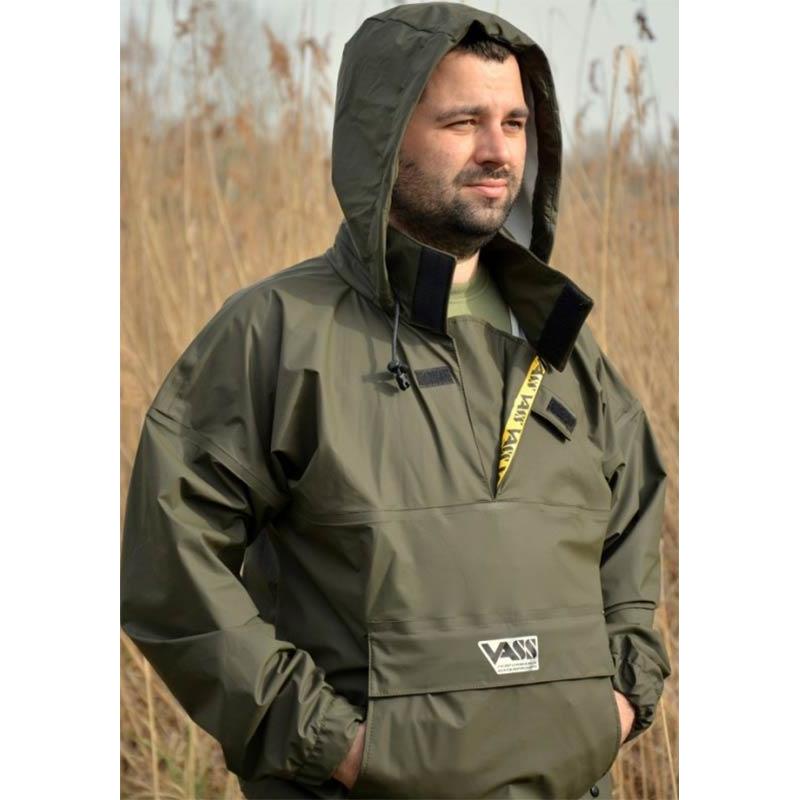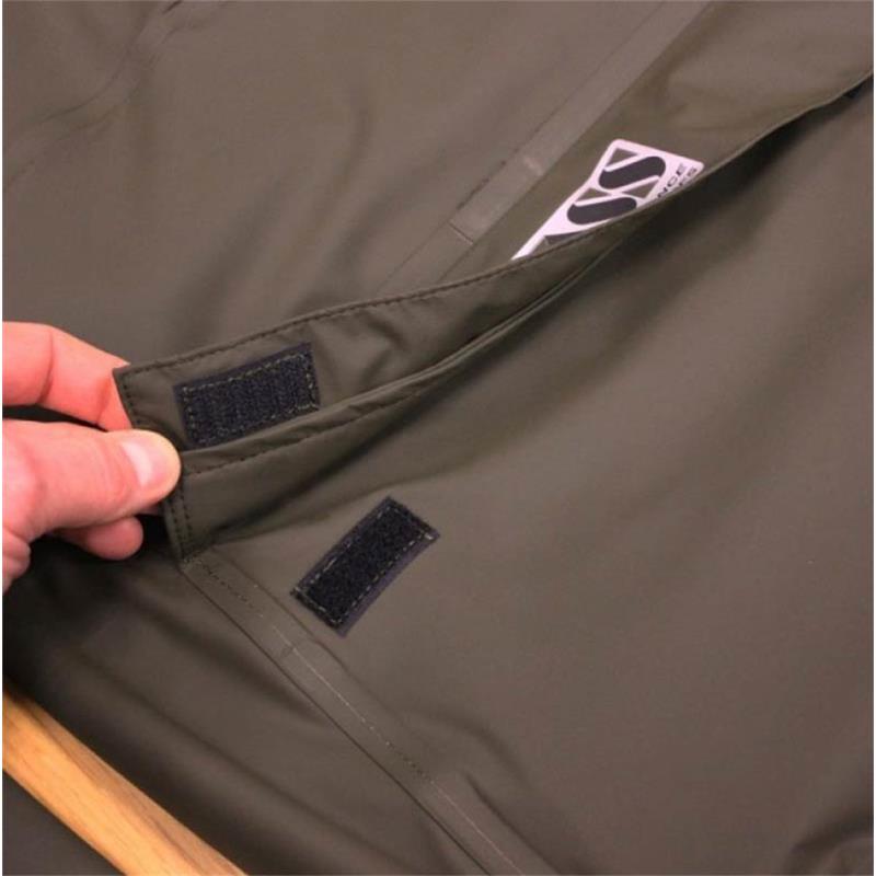 Caratteristiche : • Impermeabile, antivento e traspirante • Tessuto Vass che non trattiene l’acqua in superficie, l’indumento rimane quindi leggero anche sotto la pioggia (e si asciuga rapidamente) • Utilizzabile in inverno come in estate (aggiungete uno strato sotto in inverno) • Tasche laterali esterne per le mani e grande tasca ventrale separata • Tasca ventrale con patta antivento a pieghe e chiusura a strappo • Cappuccio antivento integrato nel colletto, con visiera trasparente • La visiera trasparente del cappuccio può essere ritagliata se non desiderata • Nuovo tessuto Vass-Tex 176 (versione migliorata del materiale 175 originale) • Tessuto Vass-Tex 176 elasticizzato in tutte le direzioni, per maggiore comfort e meno intralcio durante i lanci • Materiale facile da riparare da soli (vedere le semplici istruzioni per i waders e gli indumenti Vass) • Cuciture saldate quadruple per una perfetta impermeabilità • Cappuccio antivento dispiegabile con cordoncino di regolazione migliorato • Grande tasca frontale con chiusura a strappo e patta antivento a imbuto • Polsini elasticizzati • Fondo giacca elasticizzato con cordino di regolazione e fermo • Senza metallo, per evitare qualsiasi corrosione durante le uscite in riva all’acqua • Taglio più lungo per migliorare lo scorrimento dell’acqua • Lavabile in lavatrice (nessun trattamento di ri-impermeabilizzazione necessario)