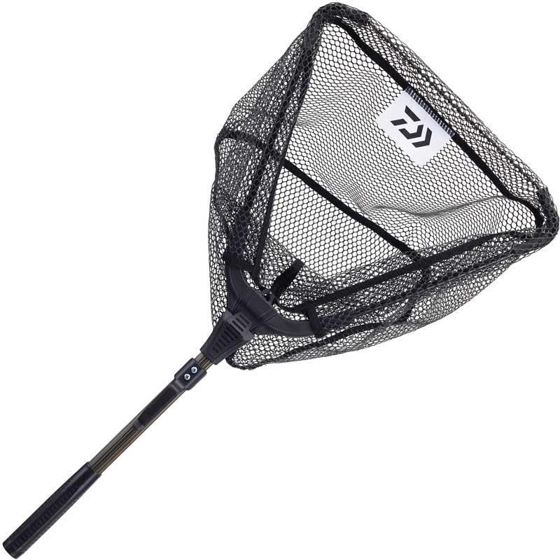 i guadini daiwa con maglia in gomma sono dotati di una testa triangolare ripiegabile con due bracci in alluminio a estremità morbida. la base dell'impugnatura è in gomma per una migliore presa. sono disponibili in uno, due o tre elementi telescopici con serraggio rapido a rotazione. la testa si richiude con un colpo di pollice grazie al pulsante di bloccaggio posizionato in modo ideale. le maglie sono in gomma per non danneggiare i pesci d'acqua dolce.