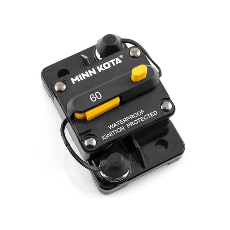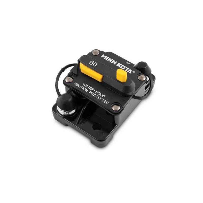 • interruttore a riarmo manuale • compatibile con tutti i motori minn kota (12-48 volts ; 60 ampere) • perni in acciaio inox da 1/4 po con isolatore di protezione incluso • pulsante push-to-trip • tenuta ip67 per utilizzo in acqua dolce o in acqua salata • accensione protetta