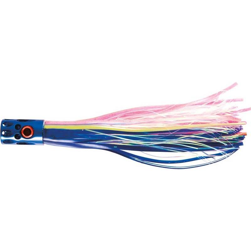 Con la sua testa dotata di molteplici fori, il MAGNUM TURBO WHISTLER produce una quantità impressionante di bolle e di turbolenze che formano una lunga scia che simula una caccia di pesci. Il MAGNUM TURBO WHISTLER possiede una doppia gonna in silicone e in fili sintetici, questo artificiale è montato con un amo Mustad 7/0, una girella AFW e un terminale in nylon da 100lb di 1.8m.