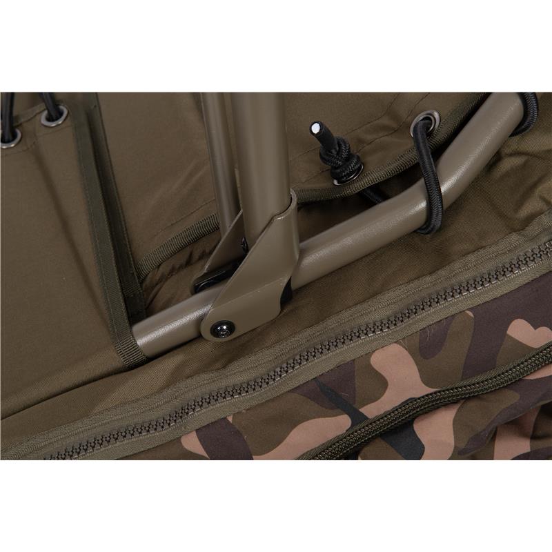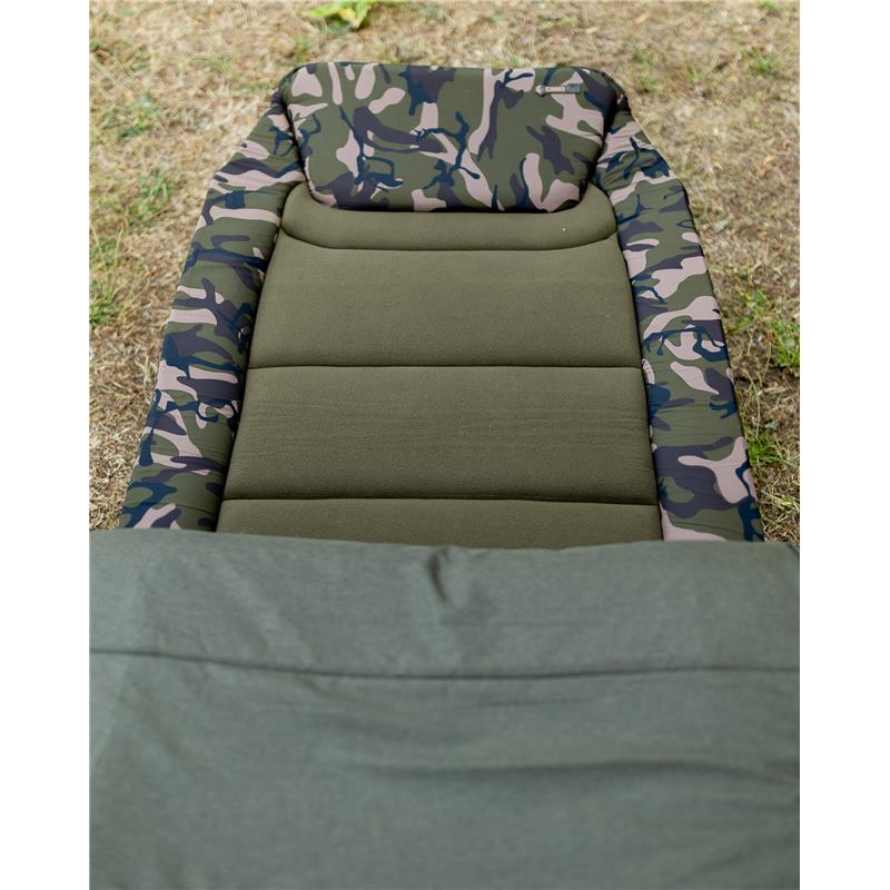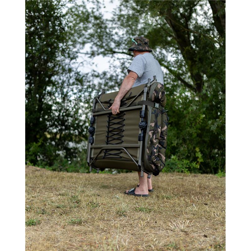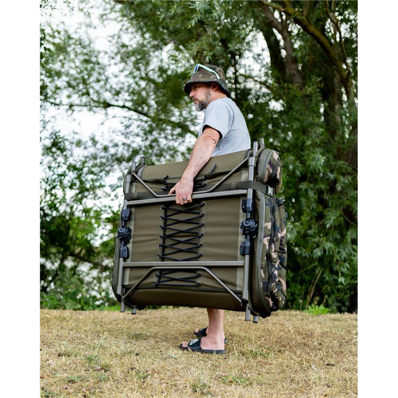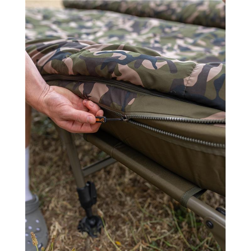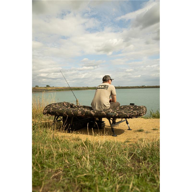 • Integrato con sacco a pelo mimetico 4 stagioni rimovibile, con fodera in pile integrale e patta termica per la ritenzione del calore. • Progettazione del lettino a profilo piatto con telaio ottimizzato per il massimo comfort e una larghezza utile ottimale. • Il sistema di supporto lombare completo garantisce un materasso solido e senza cedimenti. • Materasso imbottito foderato in pile con zona di rinforzo aggiuntiva imbottita in stampa Fox Camo • Sei piedi regolabili con ampie basi girevoli per un supporto e una stabilità massimi • Nuovo meccanismo a molla per i piedi One Touch per una facile regolazione dell'altezza • Cerniere doppie e cinghie di tensione laterali per un ripiegamento compatto • Le caratteristiche del sacco a pelo includono cerniere rinforzate da 10 mm e una zip perimetrale per una facile rimozione. • Materiali : Esterno : 100 % poliestere, Imbottitura : 100 % poliuretano (materasso), 100 % poliestere (esterno del sacco, fodera, imbottitura) • Dimensioni : Compatto - 214 cm x 86 cm x 36-45 cm, peso – 14,8 kg. Standard - 219 cm x 91 cm x 37-47 cm, peso – 15,75 kg.