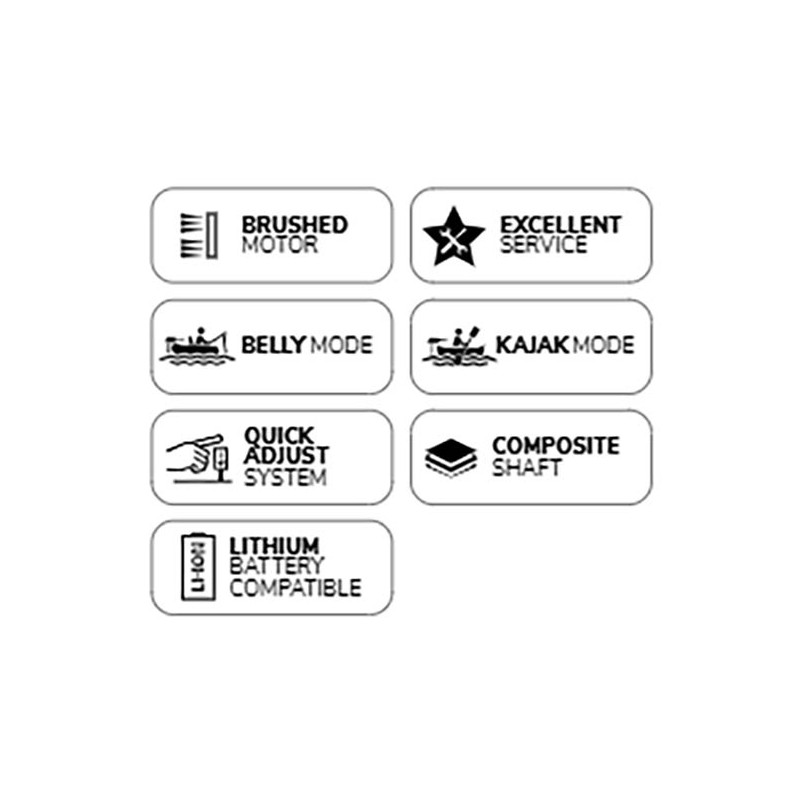 • caractéristiques : motoculteur escamotable avec deux vitesses avant et deux vitesses arrière, profondeur d’immersion de l’arbre réglable en continu • sûr, pratique et facile : repliable sur simple pression d’un bouton, la profondeur d’immersion de l’hélice et la pression de direction sont réglables en continu • utilisation idéale : sur les embarcations de pêche, les belly boats, les kayaks, les canoës et les petits bateaux pneumatiques