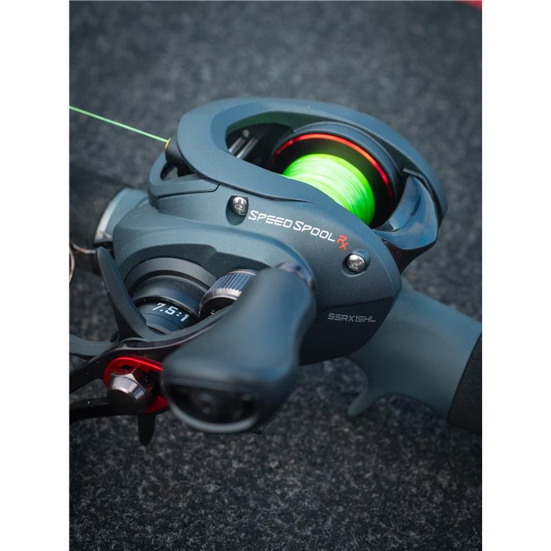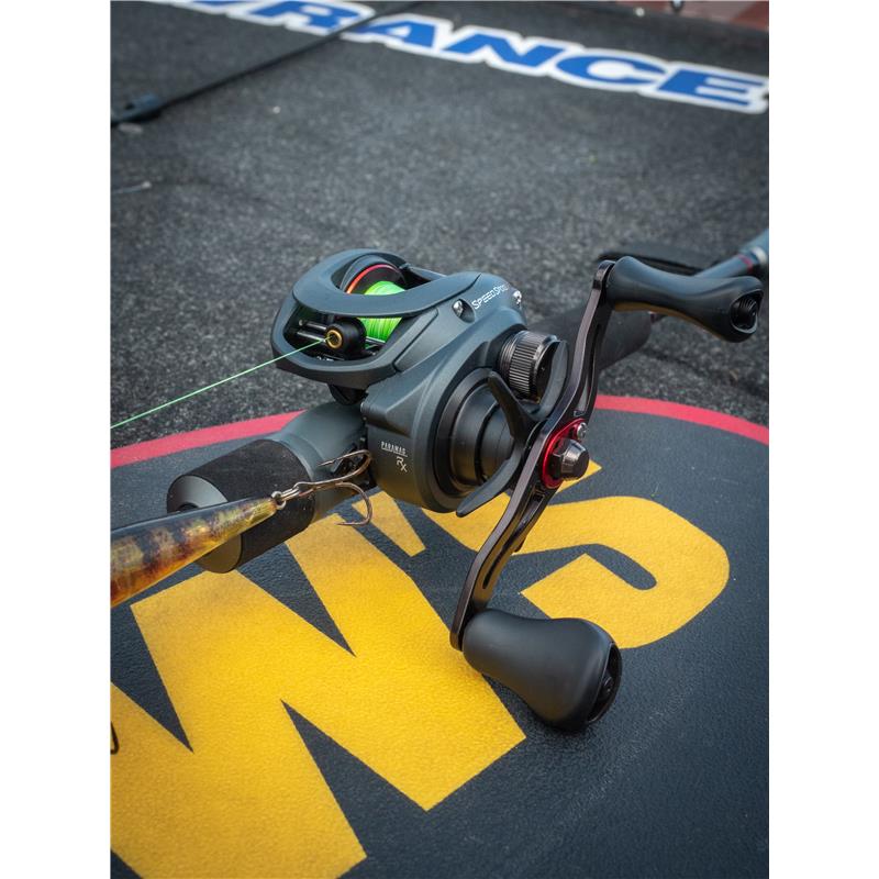 • Il sistema di frenatura Paramag® RX offre un perfetto equilibrio della bobina, una potenza di frenata estrema e regolazioni precise per lanci più fluidi e una riduzione dei grovigli • L'ingranaggio P2 Super Pinion® montato su cuscinetto garantisce un allineamento preciso e un'eccellente stabilità • Il sistema a 8 cuscinetti, con cuscinetti a sfera in acciaio inossidabile doppiamente protetti, garantisce prestazioni scorrevoli e durature per tutta la vita del mulinello • La struttura monoblocco in alluminio garantisce robustezza e affidabilità, anche in condizioni difficili • Gli ingranaggi Speed Gears® in alluminio anodizzato duro sono solidi e resistenti, per prestazioni potenti giorno dopo giorno • Il freno in fibra di carbonio sviluppa fino a 9 kg di potenza frenante • La bobina con scanalatura per nodo permette un fissaggio fluido e senza intoppi della lenza sulla bobina • Cuscinetti : 7+1 • Rapporto : 7,5:1 • Recupero per giro (pollici/cm) : 31 • Capacità linea in nylon (yards/lbs) : 120/12 • Capacità treccia (yards/lbs) : 120/50 • Peso (oz) : 6,8 • Freno max. (lbs) : 20 • Recupero : Mancino (LH) • Taglia : 34 mm • Manovella : Alluminio 95 mm