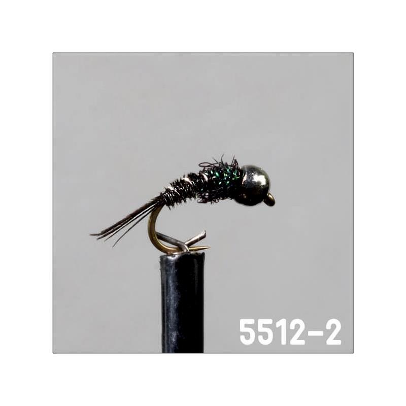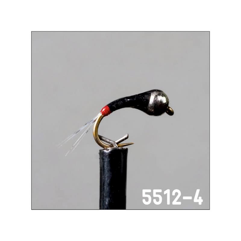 5512-4 : ninfa media curvata e classificata come ninfa imitativa. montaggio perdigone con corpo liscio nero con cerques che facilita l’immersione. completata da un tag colore sangue nella parte posteriore per apportare un leggero segnale stimolante all’imitazione.