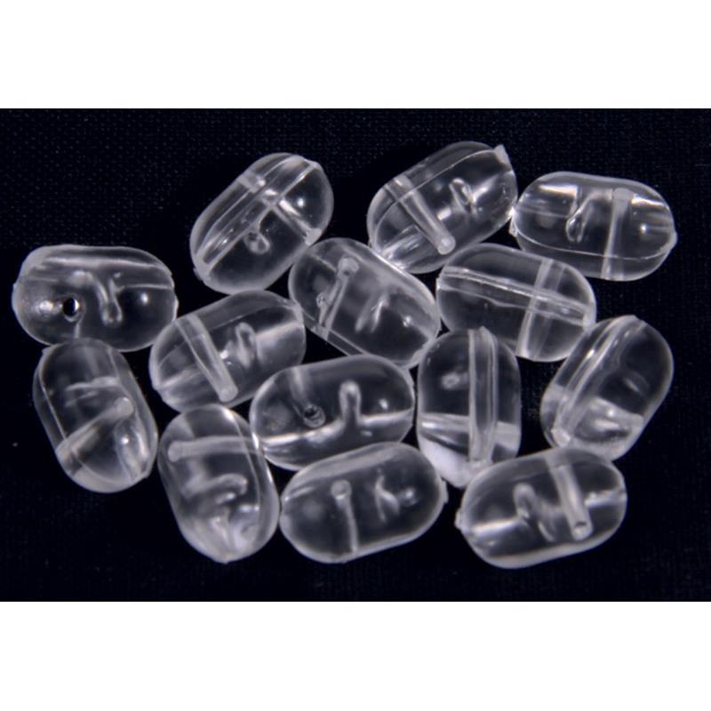 Piccole perle ovali in plastica, adatte ai montaggi fini di ami per la pesca diurna.