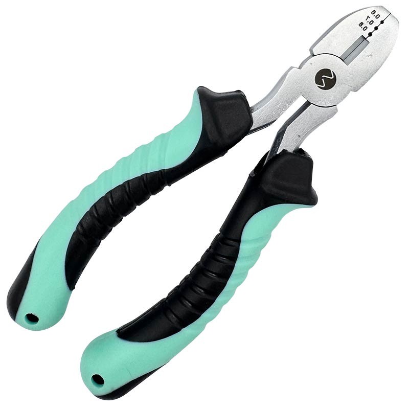 Pinza per sleeve doppia che permette di creare asole e sezioni di boom e RIGID CRIMP perfette su montaggi a base di fluorocarbonio tipo Spinner rig, Ronnie rig, Chod rig. Non ci sono più difficoltà nel realizzare lunghezze di terminale identiche al millimetro. Compatta, non occupa spazio nella scatola. Compatibile con sleeve doppie da 0,6 mm - 0,7 mm e 0,8 mm grazie ai suoi 3 alloggi. Permette inoltre di tagliare i filamenti grazie alla sua parte tagliente.