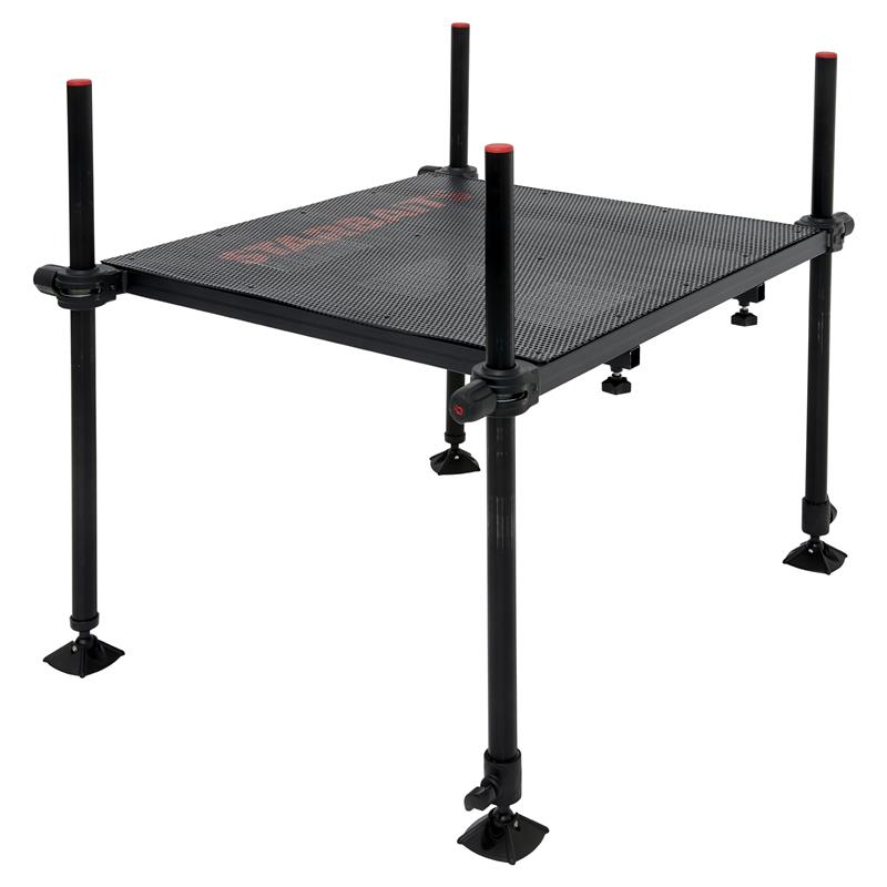 Grazie ai suoi piedini regolabili e alle superfici modulabili, questa pedana permette di allestire facilmente una piattaforma perfettamente piana, anche sui terreni più irregolari. È fornita con una piattaforma di 80 cm x 80 cm dotata di 4 piedini regolabili (altezza da 80 cm a 130 cm), e può essere allungata con l’aiuto di una seconda piattaforma della stessa dimensione, munita di 2 piedini fissi (altezza max 80 cm), per ottenere una superficie di 80 cm x 160 cm secondo le vostre esigenze. La sua piattaforma in lamiera forata è antiscivolo e progettata per eliminare qualsiasi rischio di ristagno d’acqua, assicurando così una sicurezza ottimale e un comfort d’uso senza pari. La sua stabilità eccezionale permette di effettuare lanci decisi con piena fiducia, senza alcuna perdita di equilibrio.