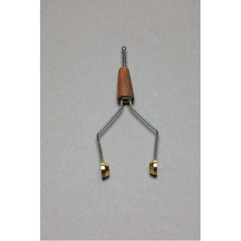 Porta bobina di piccole dimensioni con una maniglia in legno e con, su ciascun lato, un pezzo di ceramica. Adatto a tutti i tipi di bobine.