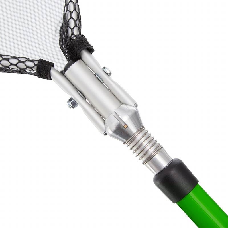 Il guadino telescopico pieghevole è realizzato in leghe di alluminio di alta qualità e può essere rapidamente aperto con una sola mano grazie al suo blocco metallico e alla molla in acciaio inox, consentendo così ai giovani pescatori di assicurare immediatamente la loro cattura.