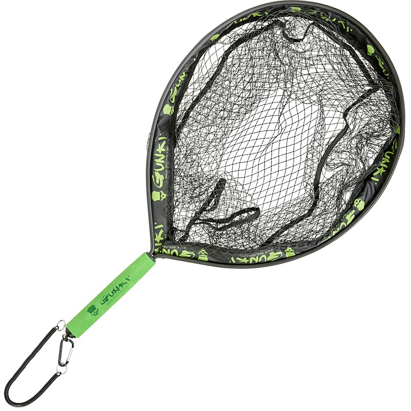 Guadino galleggiante Gunki di tipo ‘racchetta’ adatto alla pesca in float tube. Di concezione volutamente compatta e poco ingombrante, la sua rete (a fondo piatto) rimane profonda per accogliere pesci esemplari o fungere da nassa temporanea sul lato del vostro float tube.