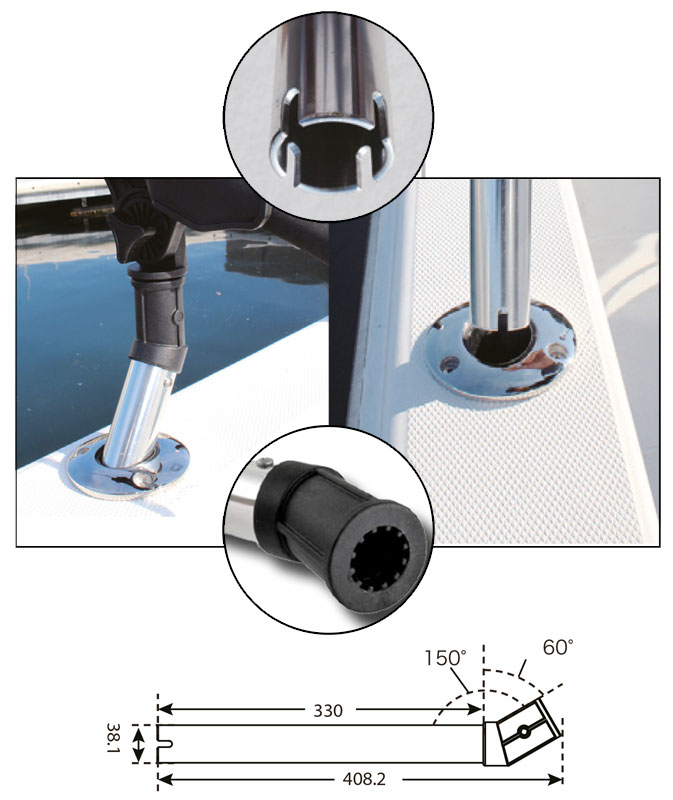 rallonge gomito in metallo per portacanne da barca