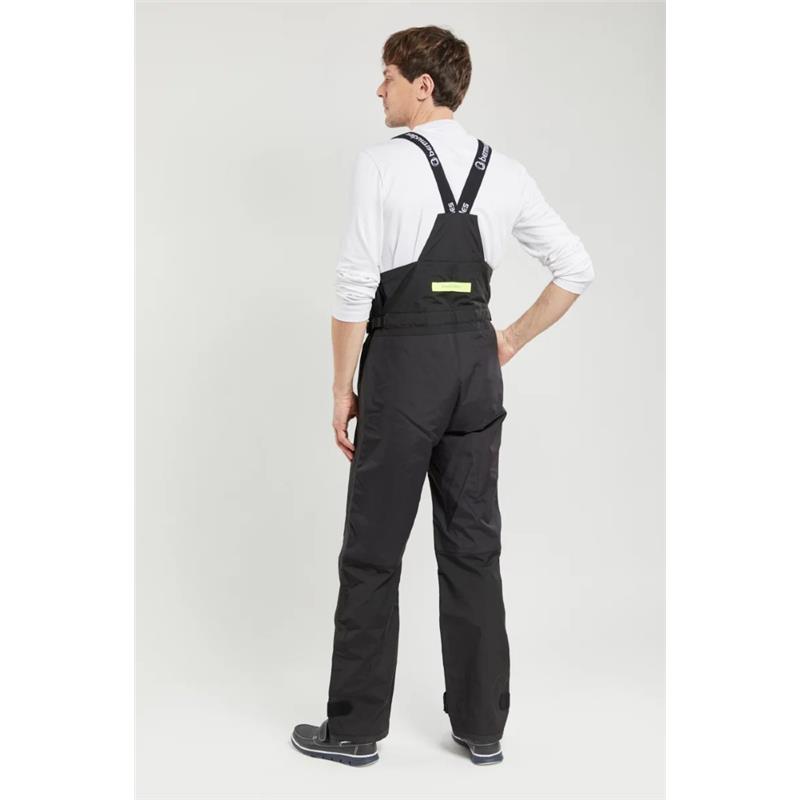 Salopette tecnica impermeabile e traspirante (10000/10000), cuciture sigillate. Due tasche, di cui una sul petto con zip e una sotto il rinforzo del ginocchio per attrezzi multifunzione. Orli delle gambe regolabili con Velcro®, vita regolabile, orli delle gambe foderati in poliuretano per facilitare il passaggio del piede.