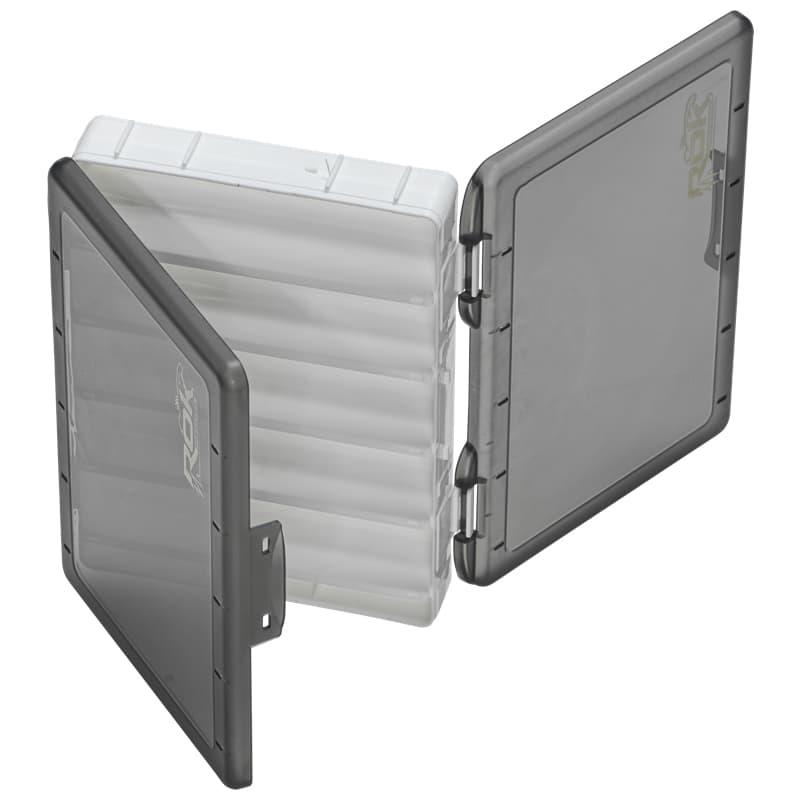La DUAL SIDED LURE BOX 2141 è una scatola per esche a doppia faccia compatta che misura 19 x 14 x 3,7 cm. Con un totale di 10 scomparti e fori per lo scarico dell'acqua, è ideale per riporre numerose esche limitando i rischi di corrosione. Il suo colore bianco limita l'aumento della temperatura, mentre i coperchi fumé offrono una protezione anti-UV molto efficace.