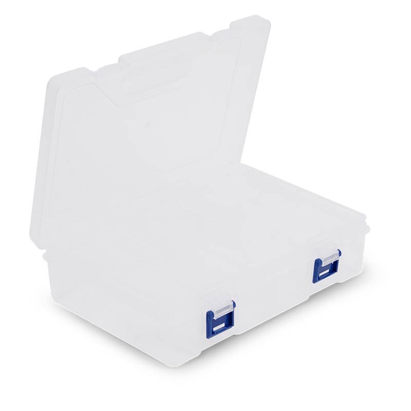 scatola di stoccaggio per accessori a due livelli e con scomparti personalizzabili. una seconda parte all'interno vi permetterà di riporre il vostro piccolo materiale. leggera e progettata per durare. chiusure di qualità per un trasporto più sicuro.
