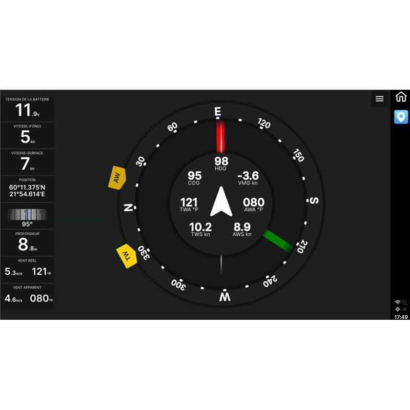 NMEA 2000 : I display NOVA permettono di centralizzare in un unico punto tutte le informazioni NMEA2000 che circolano sulla rete di bordo. Così, le informazioni motore (consumo, livello dei serbatoi, temperatura, giri al minuto…), le informazioni vento (velocità, direzione, intensità…), le informazioni di navigazione (rotta e velocità fondo o superficie, posizione GPS…), le informazioni meteo (temperatura aria, acqua, pressione atmosferica…) possono essere visualizzate su uno schermo personalizzabile se il sensore adeguato è presente sulla rete NMEA2000.