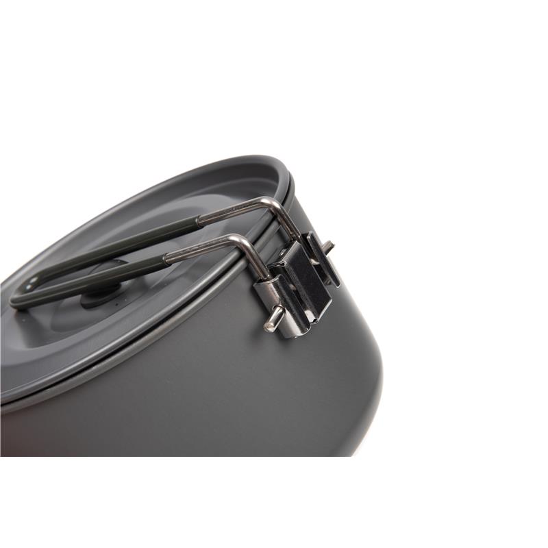 Il set di cottura da 4 pezzi comprende un bollitore Heat Transfer da 0,9 l e una pentola media come nel set da 3 pezzi, ma con l'aggiunta di una padella più grande e di una pentola capiente, rendendolo ideale per il pescatore che ama davvero preparare un banchetto in riva all'acqua. Come per il set da 3 pezzi, tutti gli elementi presentano pareti più spesse e un rivestimento antiaderente di qualità superiore. • Le pentole sono dotate di manici pieghevoli resistenti per consentirne un riponimento compatto. • Il bollitore si ripone all'interno della pentola piccola, che a sua volta si ripone all'interno della pentola più grande, la quale si trova all'interno della padella. • Fornito con una sacca in rete con cordoncino di chiusura • Bollitore Heat Transfer da 0,9L • Pentola da 168 mm x 98 mm con coperchio – volume di 1,9 l • Pentola da 190 mm x 115 mm con coperchio – volume di 2,8 l • Padella da 197 mm x 46 mm – volume di 0,9 l