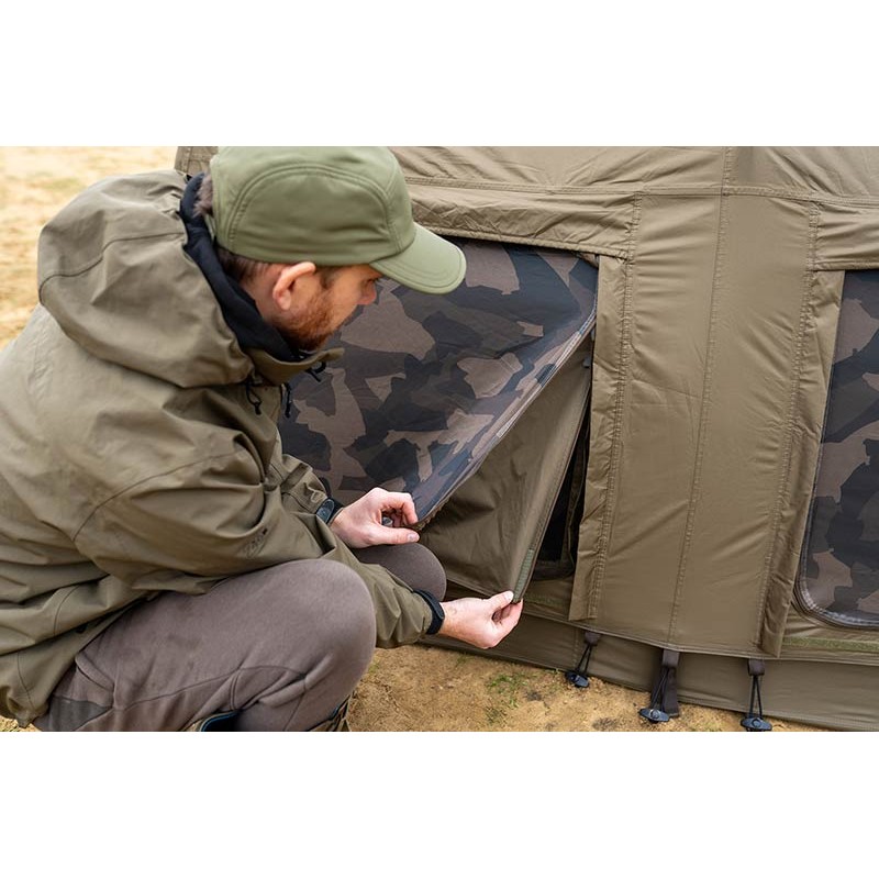 • Progettato per migliorare il vostro riparo EXO+, l’overwrap crea una barriera termica a doppio strato che migliora la ritenzione del calore in condizioni di freddo, riduce il trasferimento di calore in estate e riduce significativamente la condensa. • Realizzato in materiale EX kaki marrone con impermeabilità di 20 000 mm per adattarsi perfettamente al vostro riparo EXO+. • Dotato di quattro aerazioni con accesso tramite zip, che permettono di utilizzare le aerazioni del riparo anche quando l’overwrap è installato. • Include pannelli laterali avvolgibili per una configurazione a facciata aperta. • Caratteristiche supplementari : due cinghie di fissaggio per canne, grondaia integrata, occhielli di ancoraggio elastici, e una porta sovradimensionata in stile “cassetta postale”, con cerniera centrale e laterale.Fornito con una sacca da trasporto e picchetti robusti. • Dimensioni (cm) : 140 x 270 x 250 (l’overwrap aumenta la copertura frontale di 55 cm). • Dimensioni piegato (cm) : 62 x 20 x 20.Peso totale : 5,1 kg.