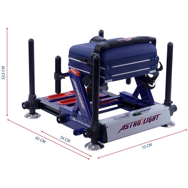 Astro Light è la soluzione ideale per chi cerca prestazioni elevate in un formato compatto e ultraleggero. Il suo telaio è progettato per garantire una maneggevolezza massima senza compromettere la stabilità. Dotato di morsetti laterali rinforzati, di piedi in alluminio forati, di un sistema di livellamento a 3 livelli e di un sedile ergonomico in schiuma, garantisce precisione, comfort e praticità in tutte le condizioni.