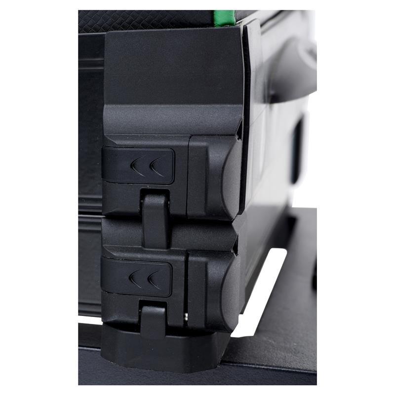 • Modello di tipo stazione • Cuscino dotato di una resina speciale • Pedana scorrevole • 2 mezzi cassetti • Sistema di chiusura personalizzabile • Blocco di serraggio del piede 180° con sistema antiscivolo. • Supporto per keepnet integrato a livello della pedana • 2 piedi telescopici (diametro 36) • 4 piedi standard (diametro 36) • 1 scomparto di 40 mm di altezza • Dotato di 2 livelle a bolla per un'installazione migliore • 1 cinghia di trasporto • Supporti per ruote posteriori