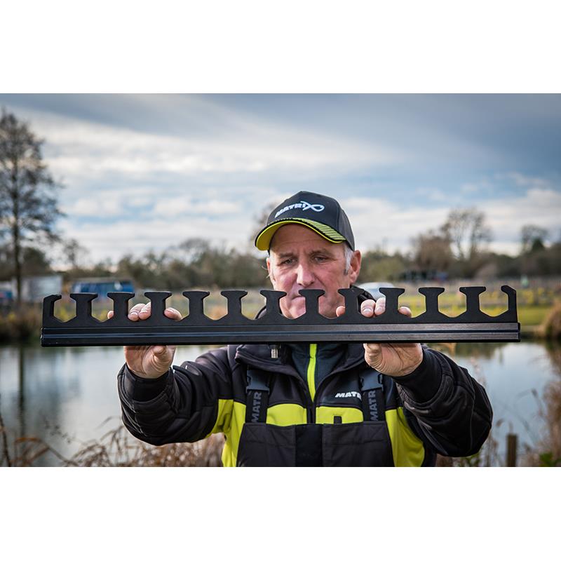 • fino a 12 kit o canne • schiuma eva con forme esagonali che impediscono ai kit e alle canne di sollevarsi • filetto centrale standard per il fissaggio su picchetti o bracci e piedi delle postazioni • larghezza totale 70cm • peso 422g