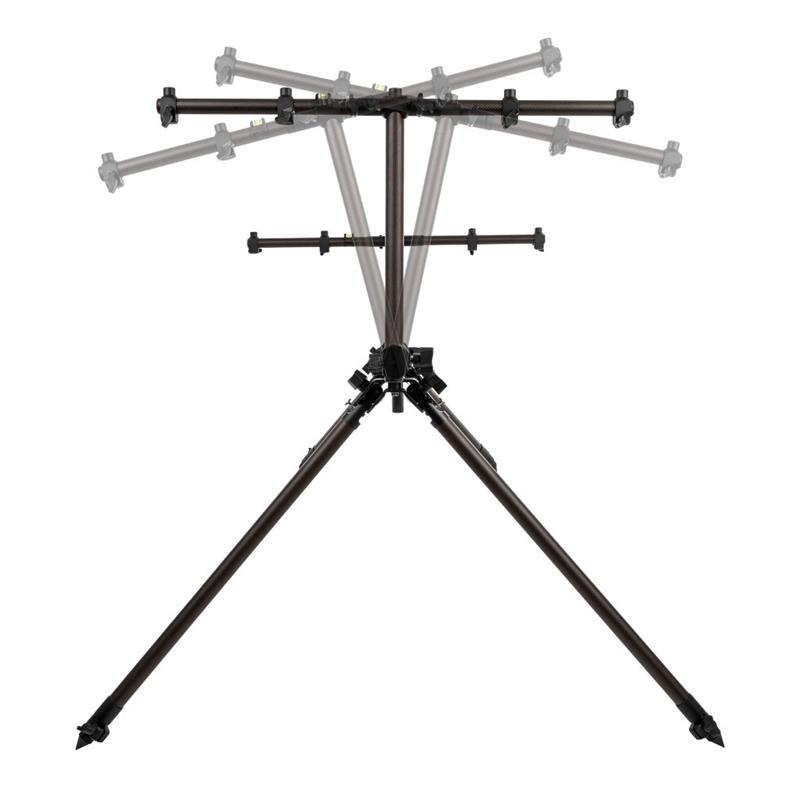 il fencl rodpod xtreme è un supporto per canne interamente in metallo che combina il moderno carbonio 3k con componenti metallici tradizionali in un design nero ed elegante. progettato per offrire precisione, flessibilità e massima durabilità, soddisfa le esigenze dei pescatori più esigenti, sia sulla riva di un fiume sia di un lago.