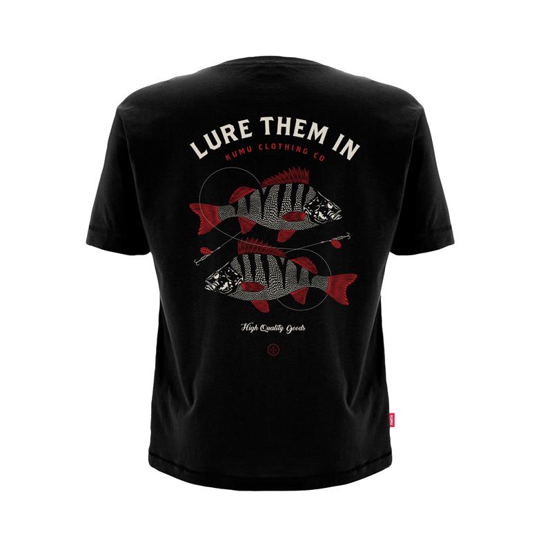 Questo è per la squadra dei pescatori di pesci predatori. Disegnato interamente a mano, il nostro motivo Lure Them In simboleggia l'arte di attirare questi sfuggenti « striati » dalle profondità dove si nascondono. Serigrafia a due colori, avorio e rosso, su un tessuto biologico ultra morbido da 150 g con etichetta tessuta sul lato.