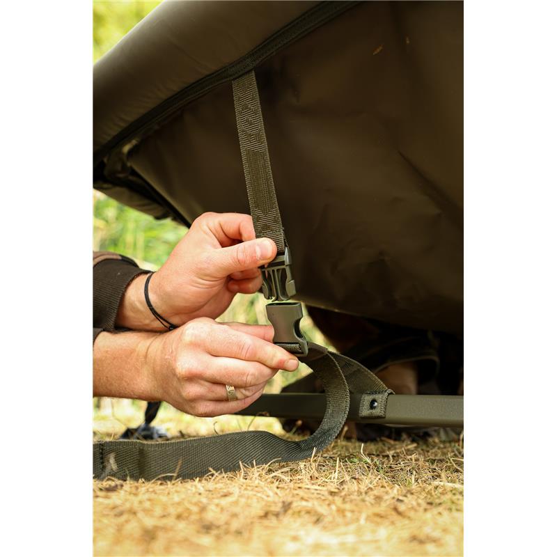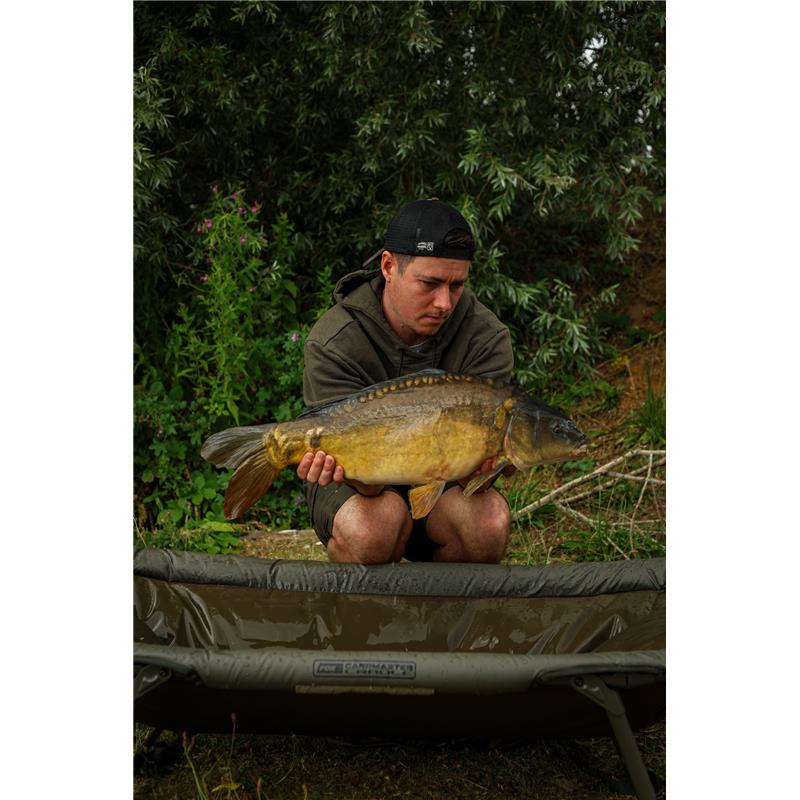 • Tappetino di ricezione con telaio e 4 piedi regolabili, larghi e orientabili • Perimetro del telaio imbottito • La zona centrale è sospesa sopra il suolo ed è lontana da qualsiasi struttura. • Struttura completamente saldata per impedire all'acqua di penetrare nei tubi • L'area di appoggio non presenta fori di scarico in modo che l'acqua venga trattenuta nel tappetino per una cura ottimale dei pesci. • Dotato di patta impermeabile mimetica con elastico • Fornito in una borsa in poliestere con cerniera • Altezza del telaio - 30 cm estendibile di ulteriori 9 cm per compensare il terreno irregolare • Dimensioni – 126 x 78 cm • Peso: 6,6 kg