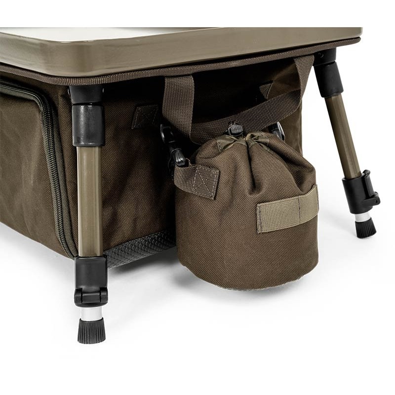 • Il Bivvy Organiser XL ti permette di rimanere organizzato e poco ingombrante durante le tue sessioni in riva all'acqua. • L'Organiser dispone di una borsa integrata nella parte bassa che può ospitare oggetti come scatole da pesca o materiale da cucina. • Sul lato della borsa, c'è un supporto clip-on per bombola di gas che mantiene la tua bombola sollevata dal suolo, rendendo l'Organiser ideale per cucinare. • Dispone di quattro piedi regolabili facili da piegare • Fornito in una sacca da trasporto • Dimensioni aperte (cm) 60 x 35 x 25-35 • Dimensioni riposte (cm): 65 x 40 x 8 • Peso : 3,3 Kg
