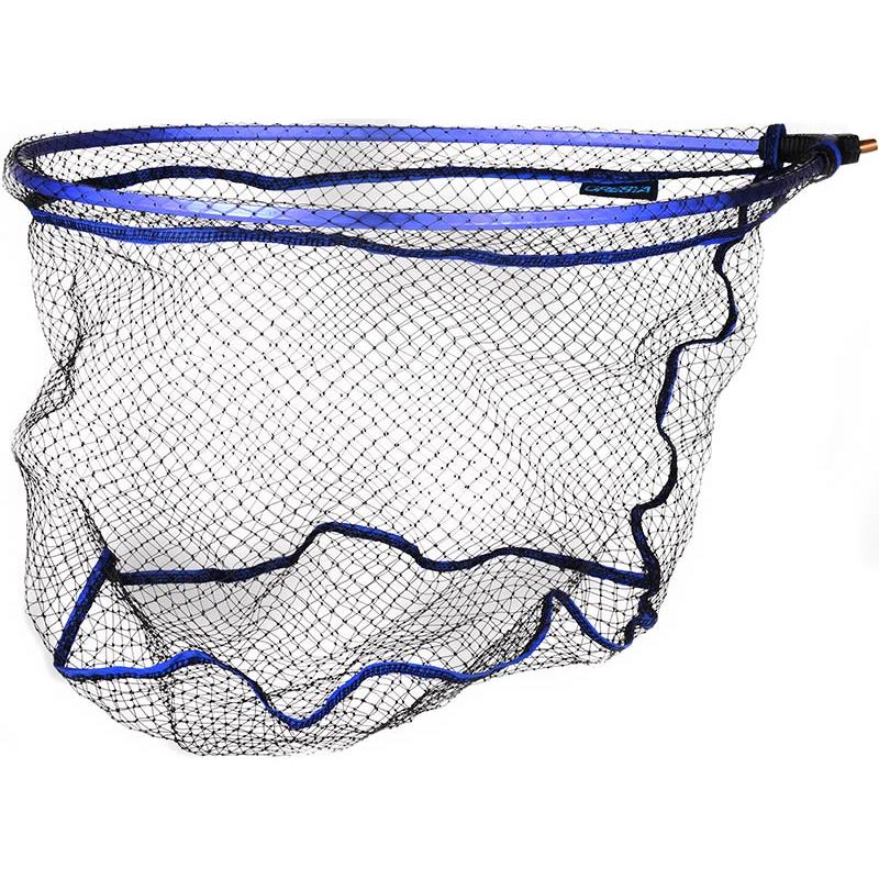 Queste teste per guadino sono realizzate a partire da un nylon discreto di colore nero annodato di 0,30 mm con maglie da 12 mm. Le maglie ampie facilitano il passaggio dell'acqua attraverso le maglie, facilitando così la rapida entrata nel guadino. La testa per guadino ovale è dotata di un blocco distanziatore in metallo che conferisce così una maggiore robustezza all'insieme.