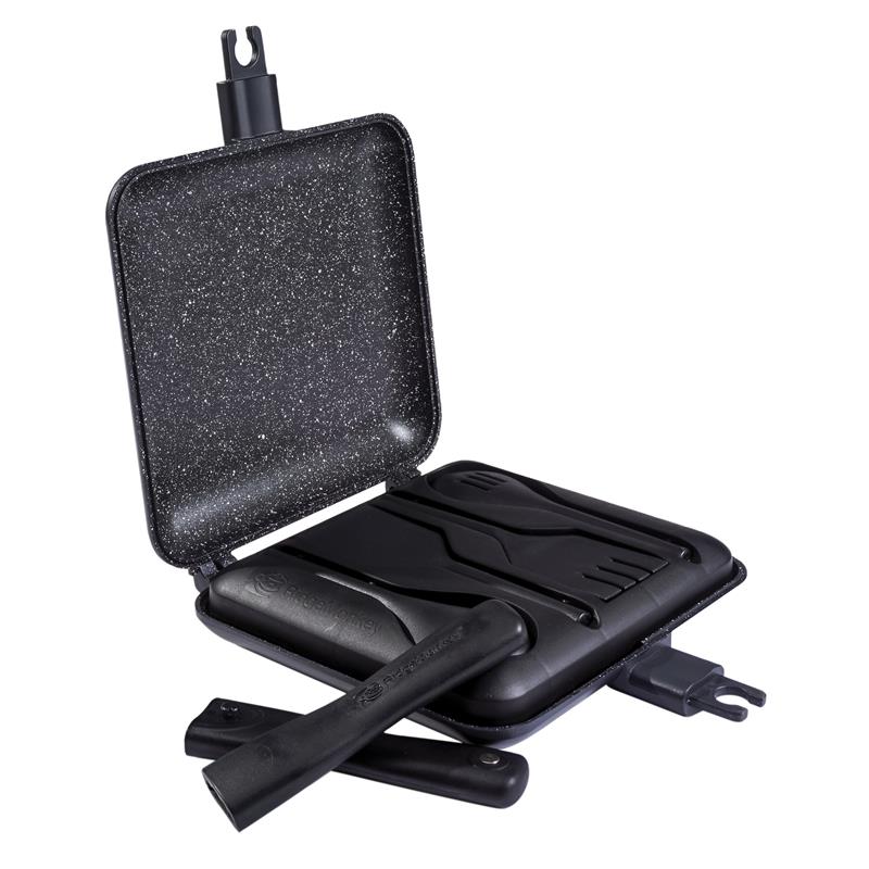 Questo set include il nostro libro di ricette, «Un decennio di cucina all'aperto», con più di 70 delle nostre ricette preferite degli ultimi 10 anni che potete perfezionare con i nostri utensili da cucina mentre vi godete l'aria aperta. Il libro si adatta perfettamente in una tasca con cerniera all'interno della custodia di trasporto, quindi siete sicuri di averlo con voi come fonte d'ispirazione durante le vostre avventure all'aperto.