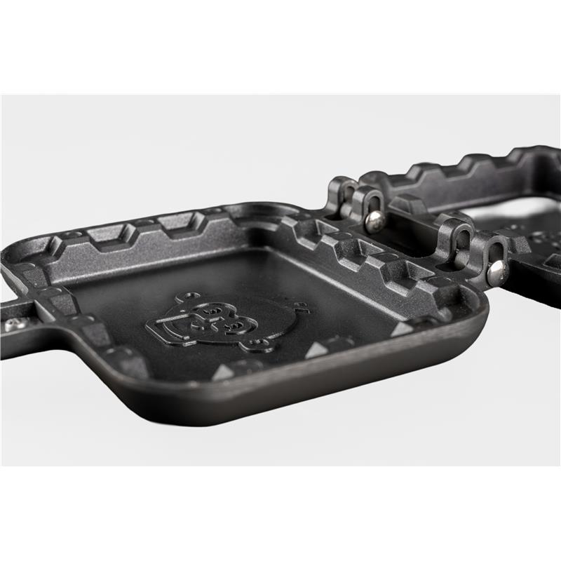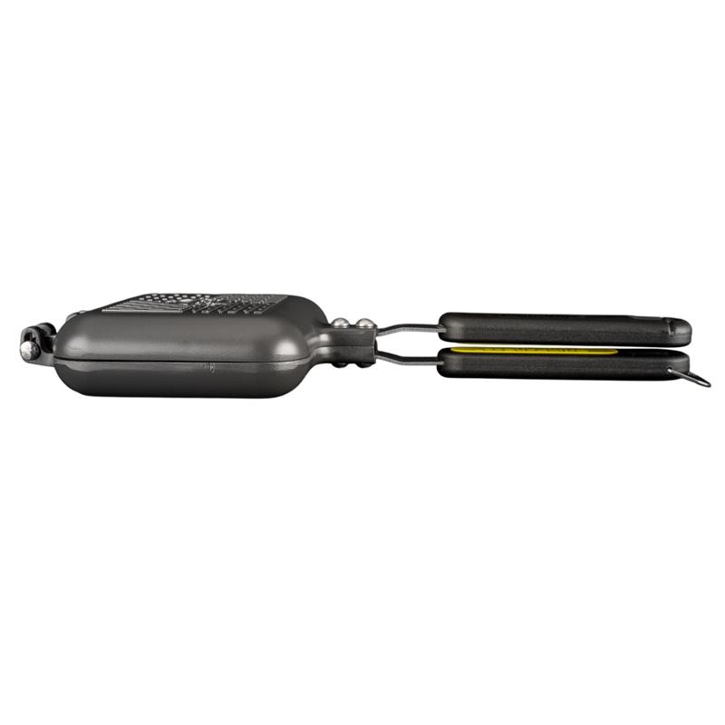 Caratteristiche : • Rivestimento antiaderente duraturo senza PFOA • Padelle doppie con bordi dentellati incastrabili • Cerniera scorrevole regolabile per una facile chiusura • Struttura leggera in alluminio pressofuso • Finitura grigio acciaio • Esterno rigato per un trasferimento di calore uniforme • Maniglie antiscivolo con chiusura integrata • Utilizzabile su tutti i piani cottura tradizionali e fonti di calore dirette* • Custodia per il trasporto inclusa *Non adatto ai piani a induzione