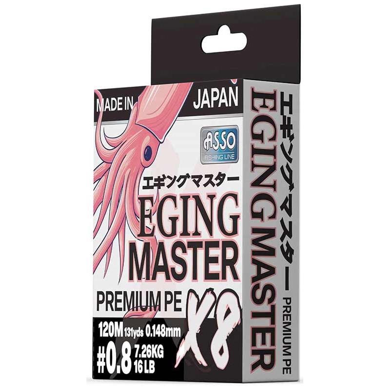 La PE Eging Master 8X Asso è una treccia a 8 fili composta da nano fibre ultra fini e resistenti. Associata a un nuovo sistema di tessitura innovativo, la sua sezione è perfettamente rotonda e la sua superficie è ultra liscia come la seta. Questa treccia offre una morbidezza incredibile durante il recupero – permettendo di individuare i tocchi più fini dei cefalopodi o dei pesci. La sua tessitura ipercompatta e il suo tocco setoso ottimizzano inoltre le distanze di lancio e la rendono più resistente all'abrasione. La sua colorazione rosa bubblegum ad alta visibilità è particolarmente adatta all'eging perché permette di individuare i tocchi più fini.