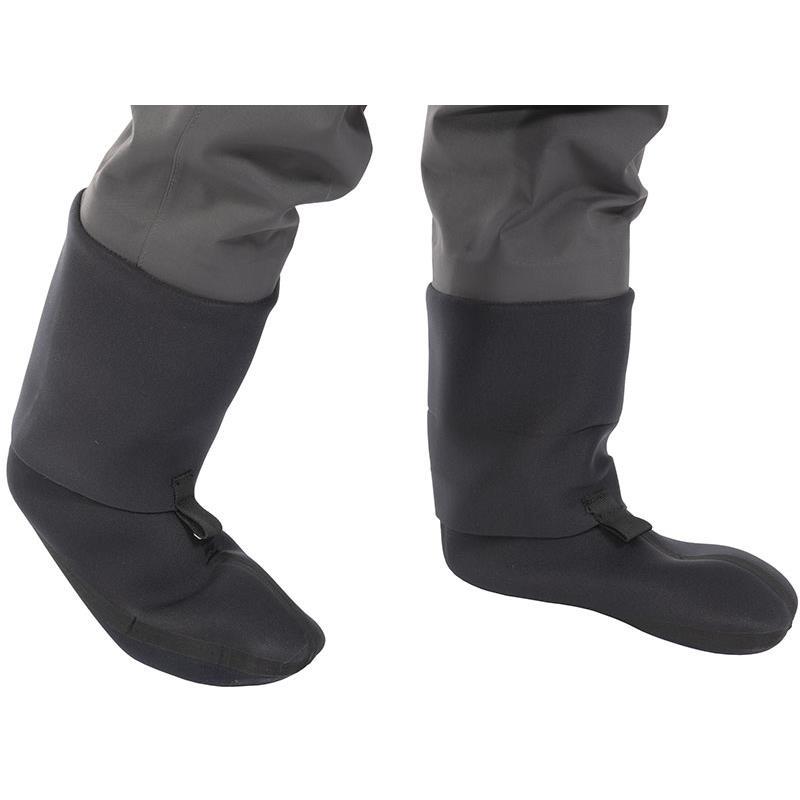 Waders traspiranti in tessuto rinforzato per la pesca in fiume, sulle rocce, in spiaggia o in float tube. Tessuto rip stop con laminato impermeabile (WP 20000mm)/traspirante a 3 strati (WP 20.000mm) e cuciture impermeabili con giunti di fabbricazione giapponese. Tasche sul petto con cerniera idrorepellente YKK (ATTENZIONE : questa tasca non è impermeabile). Tasca interna con cerniera. Bretelle elastiche regolabili per un maggiore comfort. L'attacco pettorale combinato uomo/donna permette di ripiegare i waders in vita e di fissarli trasformando le bretelle in cintura. Cintura elastica regolabile con marsupio in neoprene. Anelli per appendere accessori e attrezzi. Ghette elastiche in neoprene SCR per facilitare l'indossamento e l'aggancio degli stivali. Calzini in neoprene, suola ad alta densità e rinforzo gommato sul tallone e sul tendine per evitare l'usura dello stivale. Sacca di trasporto