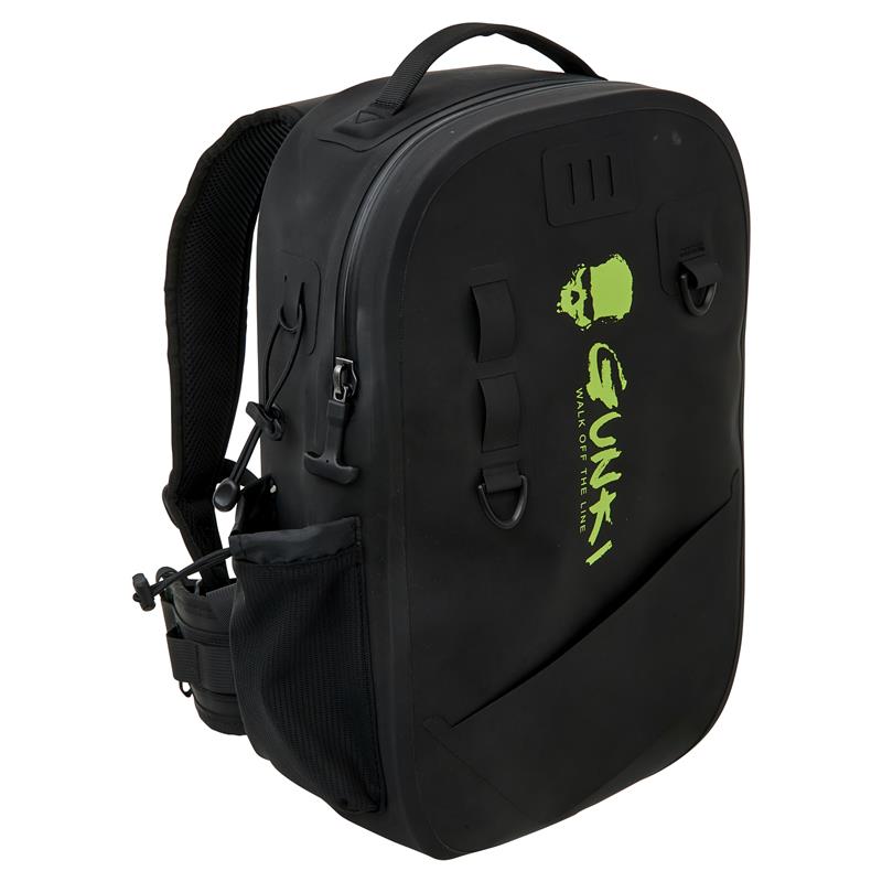 Un must per la pesca in wading! La progettazione di questo zaino GUNKI PROTEAM BACKPACK è interamente pensata per chi pesca dalla riva e non esita a entrare in acqua per raggiungere zone difficilmente sfruttabili dalla sponda e/o per guadagnare distanza di lancio. La base è realizzata in un unico blocco per proteggere il contenuto da qualsiasi contatto con la superficie dell'acqua. I materiali utilizzati, le cuciture sigillate e la chiusura impermeabile che non scende completamente fino alla base dello zaino offrono una protezione efficace contro la penetrazione dell'acqua all'interno. Realizzato in tela impermeabile in poliestere 900D rivestita in TPU, questo PROTEAM BACKPACK ha un indice di impermeabilità IP6. Robusto e compatto, possiede anelli 'D' e cinghie che permettono di fissare attrezzature complementari (guadino da wading, attrattivi, pinze... ecc.). Su un lato è previsto un sistema 'tasca + cinghia regolabile' per il trasporto di una borraccia, di una canna di ricambio... ecc. Gli spallacci imbottiti e la cinghia pettorale regolabile assicurano massimo comfort durante il cammino, il wading, il trekking... ecc., nonché una grande libertà di movimento propria della pratica della pesca (lancio, ferrata, combattimento... ecc.). Uno zaino tecnico, resistente e impermeabile che si utilizzerà sia in ambiente aperto che in ambienti ingombri, per il wading in piccoli fiumi o sulla riva di una spiaggia!