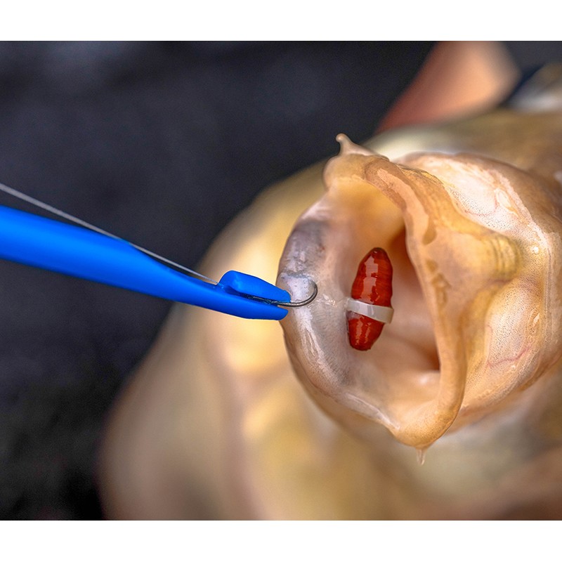 Lo strumento per la cerchiatura è dotato di un incavo che permette di inserire esche come castors o pellet da 4 mm, facilitando così lo scorrimento della banda.