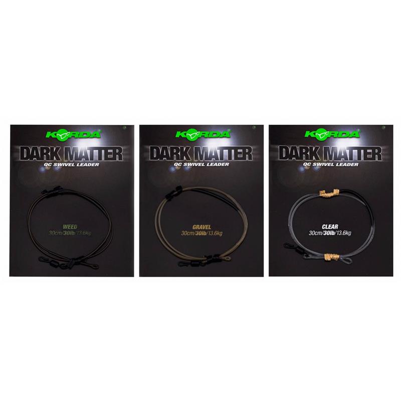 Il Dark Matter QC Swivel Leader è particolarmente adatto alla pesca con piombi inline, Lead Clips standard o montature coulissanti. A un'estremità c'è una girella QC di taglia 8 fissata a un'asola, che si adatta perfettamente a un piombo inline e permette di cambiare rapidamente e facilmente l'amo. All'altra estremità c'è un'asola fissata alla vostra lenza principale - lo stile asola ad asola è più facile da usare se desiderate togliere il vostro finale. È fissato al fondo del lago grazie ai collarini in tungsteno che sono fusi nel finale da 30lb di resistenza alla rottura. È disponibile una scelta di finali di 30 cm o 50 cm di lunghezza, così come una versione Euro da 40lb di resistenza alla rottura lunga 50 cm. Tutti sono disponibili in una scelta di colori chiari, weed o gravel. Riceverete un finale per confezione.