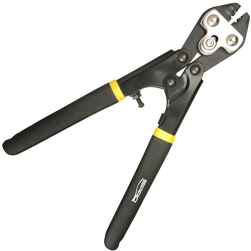 questa pinza doppia da crimpare di 21 cm è realizzata a partire da una base in acciaio ad alto tenore di manganese e da un'impugnatura in acciaio ad alto tenore di carbonio per una crimpatura sicura.la pinza comprende 3 posizioni : 1) 0.1-0.5mm, 2) 0.5-1.0mm 3) 1.0-2.0mm.