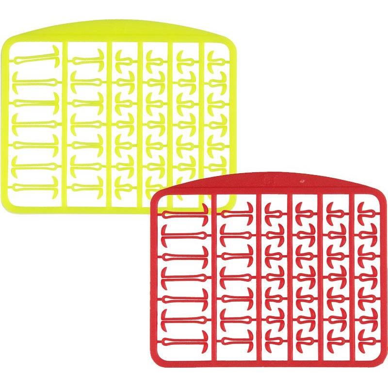 • drie verschillende lengtes aasstoppers op elk plaatje – 4 mm, 8 mm en 12 mm om alle situaties het hoofd te bieden.