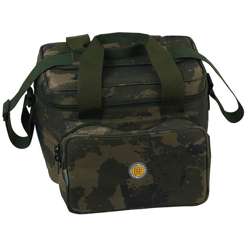 Gemaakt van duurzaam Worldwide camo 600D-materiaal met PU-coating, beschikt deze tas van 15,5L over een hoofdvak met thermische isolatie om de temperatuur te helpen behouden, evenals een groot netvak met rits in het deksel voor extra opbergruimte.