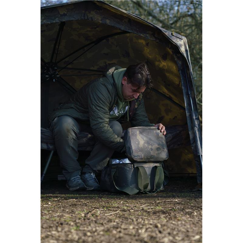 Een grote voorzak biedt plaats voor kooktoestellen, gasflessen of accessoires, terwijl de waterdichte PVC-bodem uw inhoud beschermt tegen vochtige ondergrond.