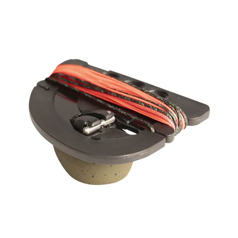 Een meter loodvrije, zware onderlijn is gespliceerd aan het uiteinde van het achtergewicht om het koord tegen de bodem van het meer te houden; dit vermindert aanzienlijk het risico op verstrikking, een veelvoorkomend probleem bij conventionele captive-systemen. Na dit loodvrije glijdende gedeelte licht een 9 meter lang Hi-Viz rood, UV-gevoelig koord op onder UV-licht, waardoor het gemakkelijk te zien is bij weinig licht.