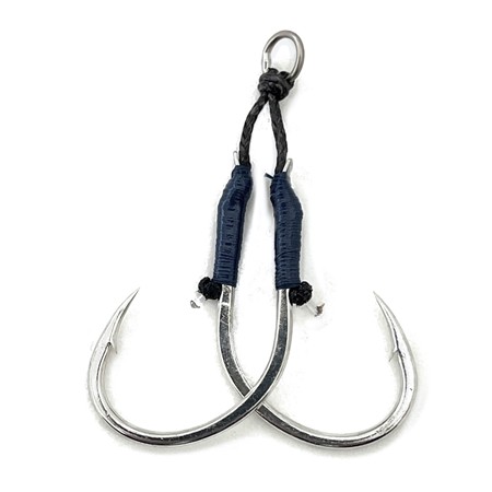 Haken van hoge kwaliteit, met de hand vervaardigd in Japan op ambachtelijke wijze; deze haken zijn ontworpen voor shore jigging, casting jig, light jigging en slow jigging, maar kunnen ook gebruikt worden om pluggen te bevestigen. Hun vorm met brede opening is ontworpen om de penetratie en het haakingspercentage te maximaliseren. Dubbel gemonteerd op een gesoldeerde ring, zijn ze verkrijgbaar in 5 verschillende lengtes van 1 tot 5 cm om zich aan te passen aan de verschillende technieken en jiglengtes. Deze haken zijn niet bedoeld voor zware Exo-visserijen.