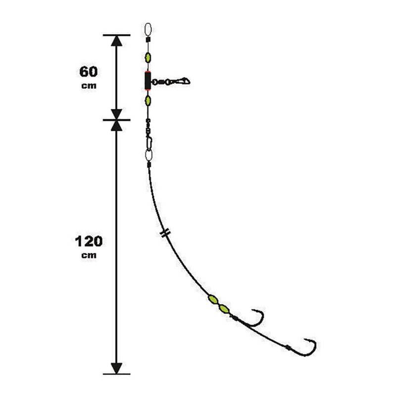 • Montage: Speciaal voor grote vissen (conger, rog, zeebrasem, zeebaars…) • Aas: hele sardine, makreelfilet, hele inktvis • Advies: gebruik een zwaar lood om de onderlijn te fixeren (120g-220g) • Lengte 60+120cm • 1 fluorocarbon leader van 120cm • Verkrijgbaar in haak N°4/0