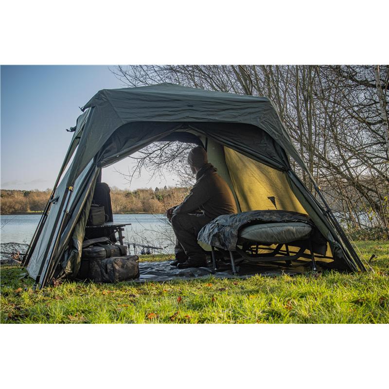 • Dit is de ideale schuilplaats voor langdurige verblijven, voor één of twee personen. • Nieuw extreem sterk, scheurvast grondzeil. • Quick-Up inklapbaar frame voor zeer snelle opzet. • De deuren zijn voorzien van een punt om regeninval te voorkomen. • Voor- en achterdeuren voor meerdere configuraties. • Dubbelwandig dak om condensatie te verminderen. • Vierkante voetafdruk maximaliseert de binnenruimte. • Voor- en achterdeuren. • Interne accessoirezakken. • Voorgeïnstalleerde rolsteun op het bivouacblok. • Nieuw klimaatgestuurd ventilatiesysteem dat in de zomer koude lucht binnenlaat en in de winter warmte vasthoudt. • Opbergvakken voor de scheerlijnen. • Geleverd in een stevige draagtas.